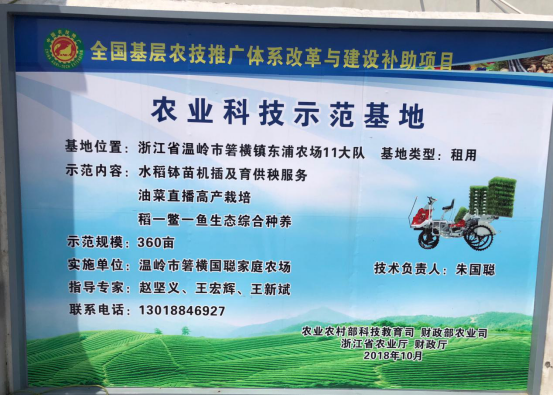 據(jù)悉,溫嶺市宏旺農(nóng)業(yè)機(jī)械化專(zhuān)業(yè)合作社(溫嶺市箬橫國(guó)聰家庭農(nóng)場(chǎng))位于溫嶺市箬橫鎮(zhèn)東浦農(nóng)場(chǎng)11大隊(duì)。作為全國(guó)基層農(nóng)技推廣體系改革與建設(shè)試點(diǎn)項(xiàng)目,合作社建有農(nóng)業(yè)科技示范基地面積360畝,涉及水稻缽苗機(jī)插及育供秧服務(wù)、油菜直播高產(chǎn)栽培、稻-鱉-魚(yú)生態(tài)綜合種養(yǎng)等示范內(nèi)容。